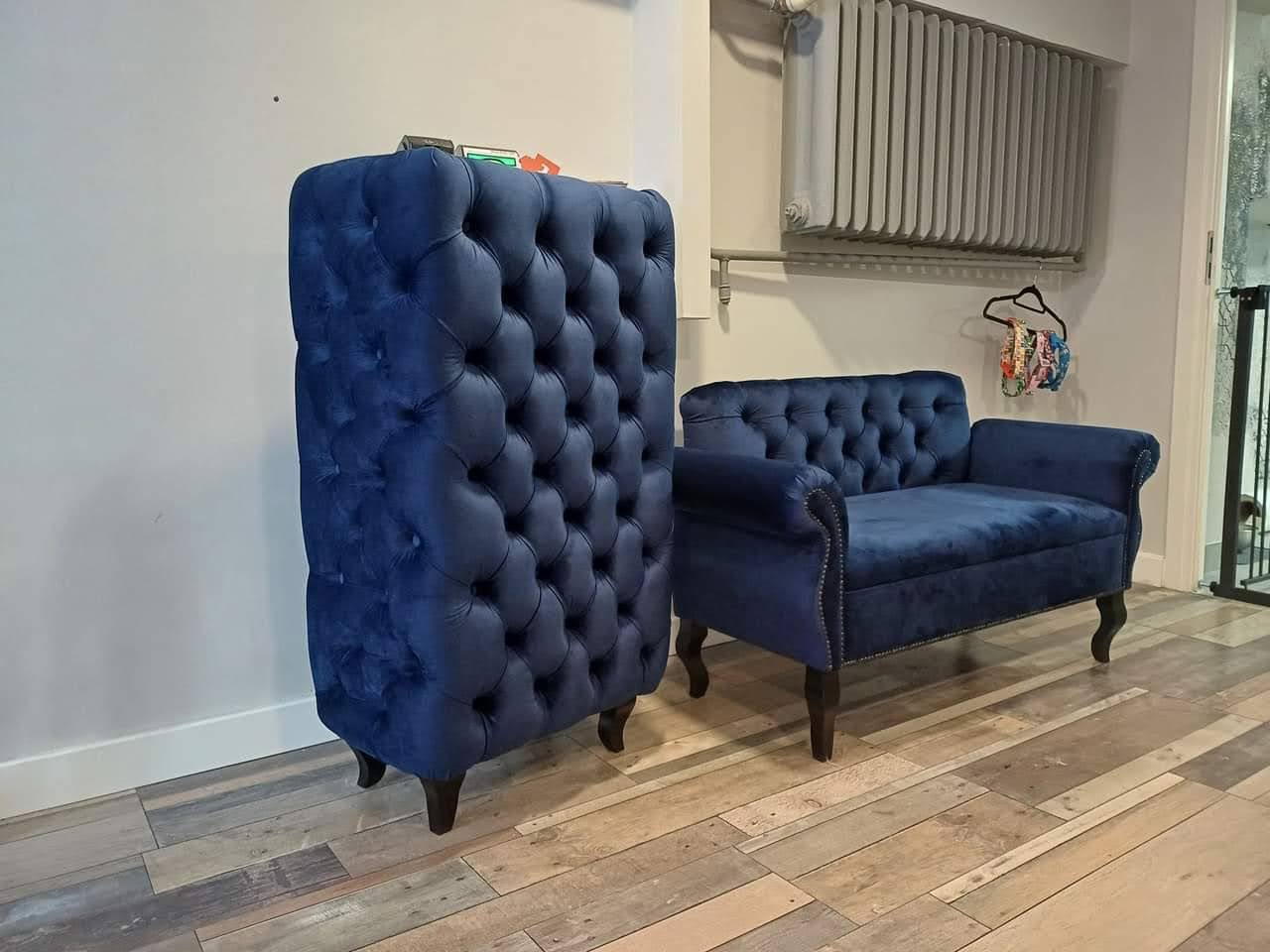 Głęboko pikowana guzikami w kolorze materiału